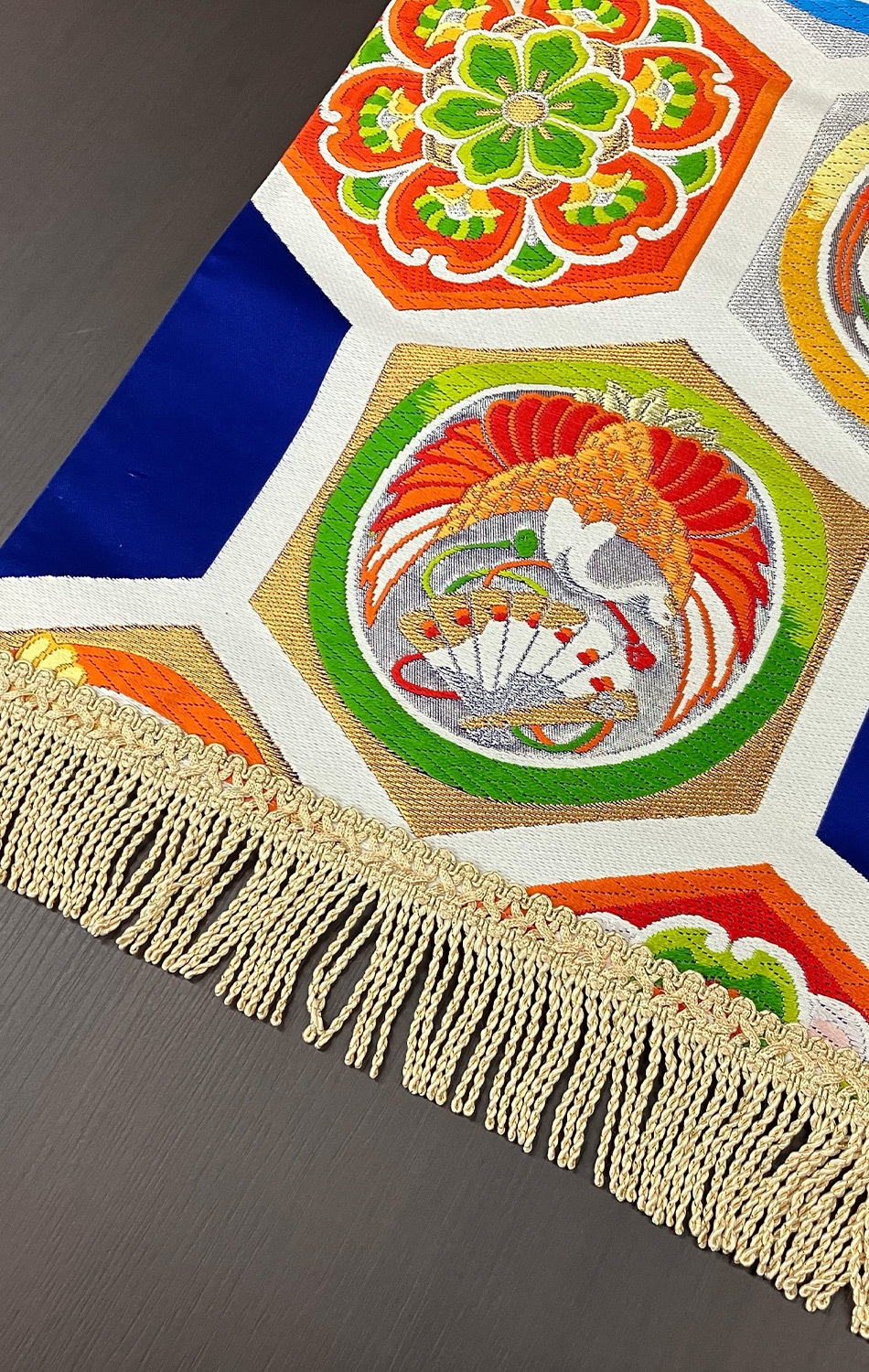 その帯地を日常にお使いいただけるよう新しい命を吹き込んだテーブルセンターです。