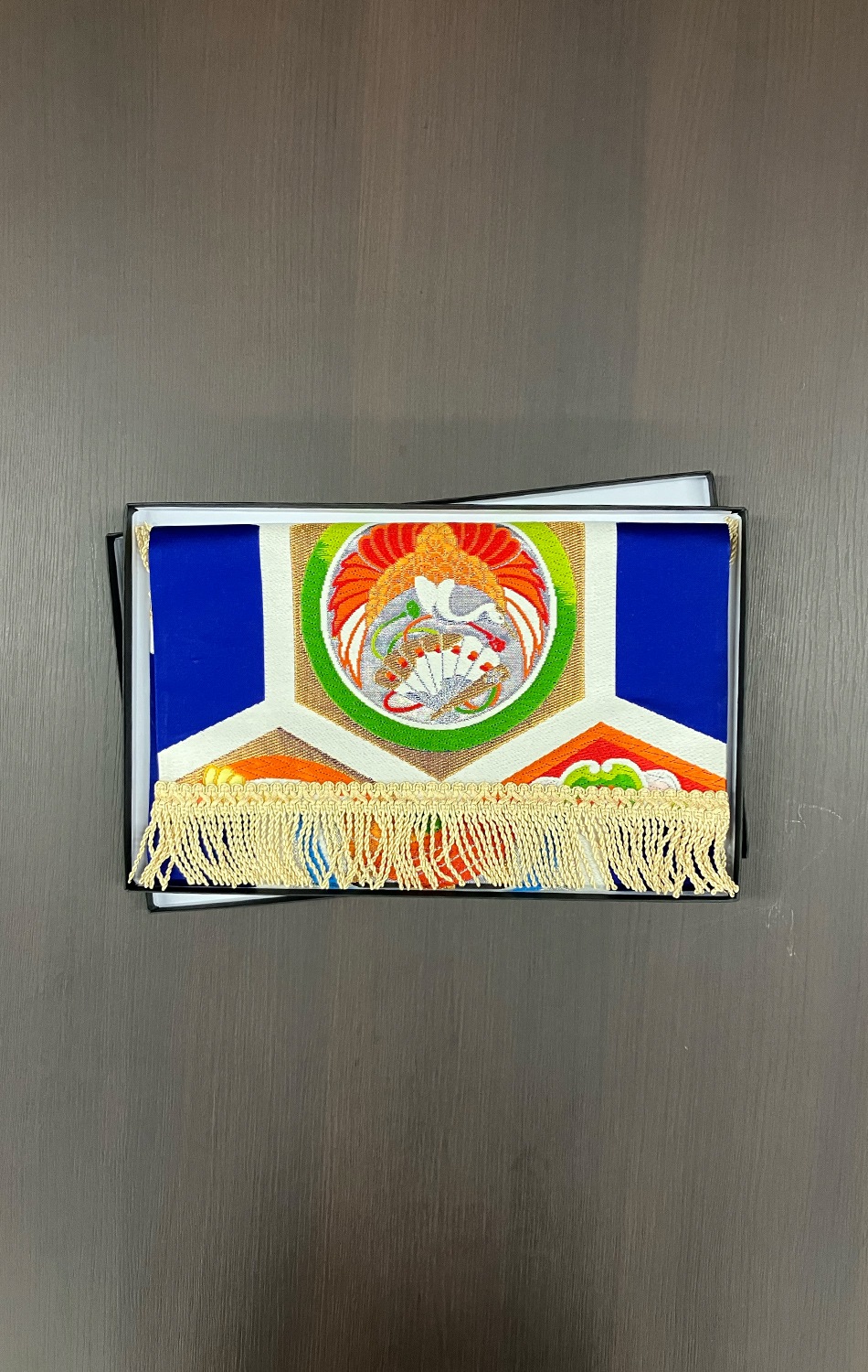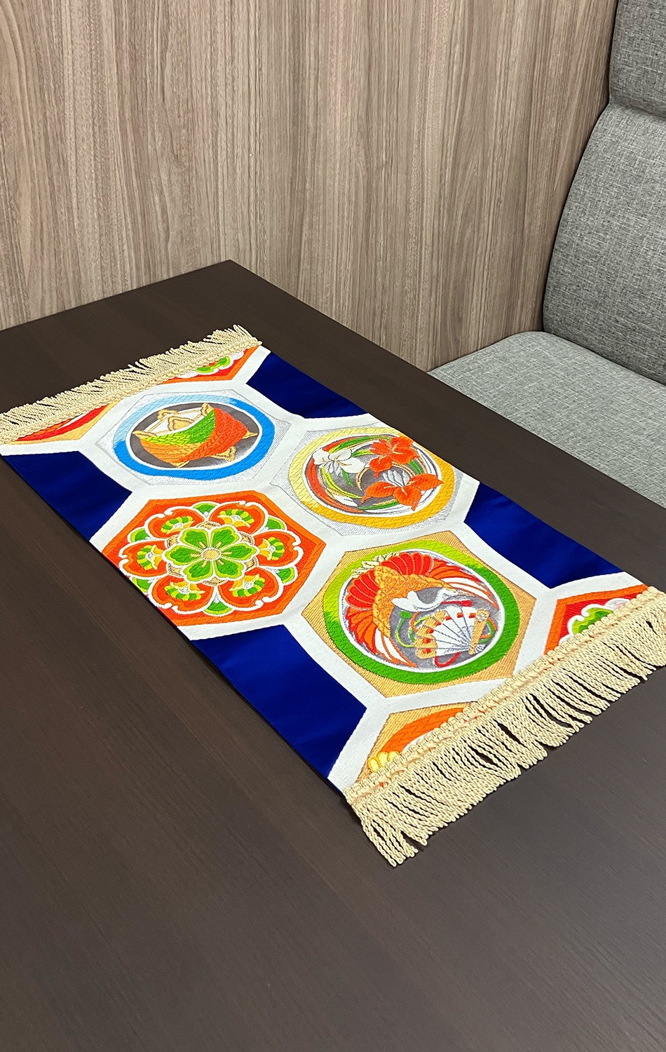 京都「西陣織」の帯をアップサイクルしたテーブルセンター。