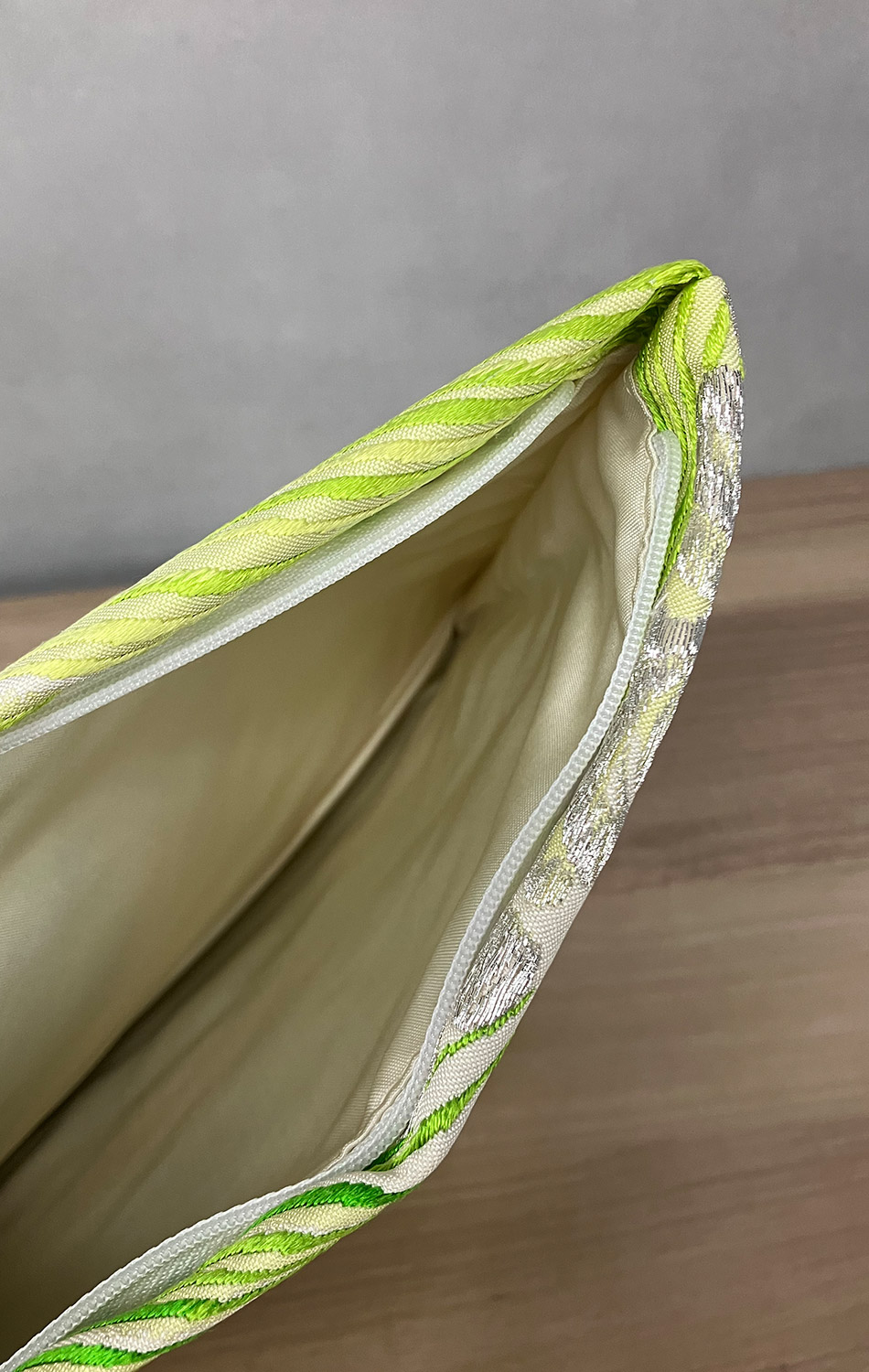 京都・「西陣織」の帯をアップサイクルしたポーチ。
